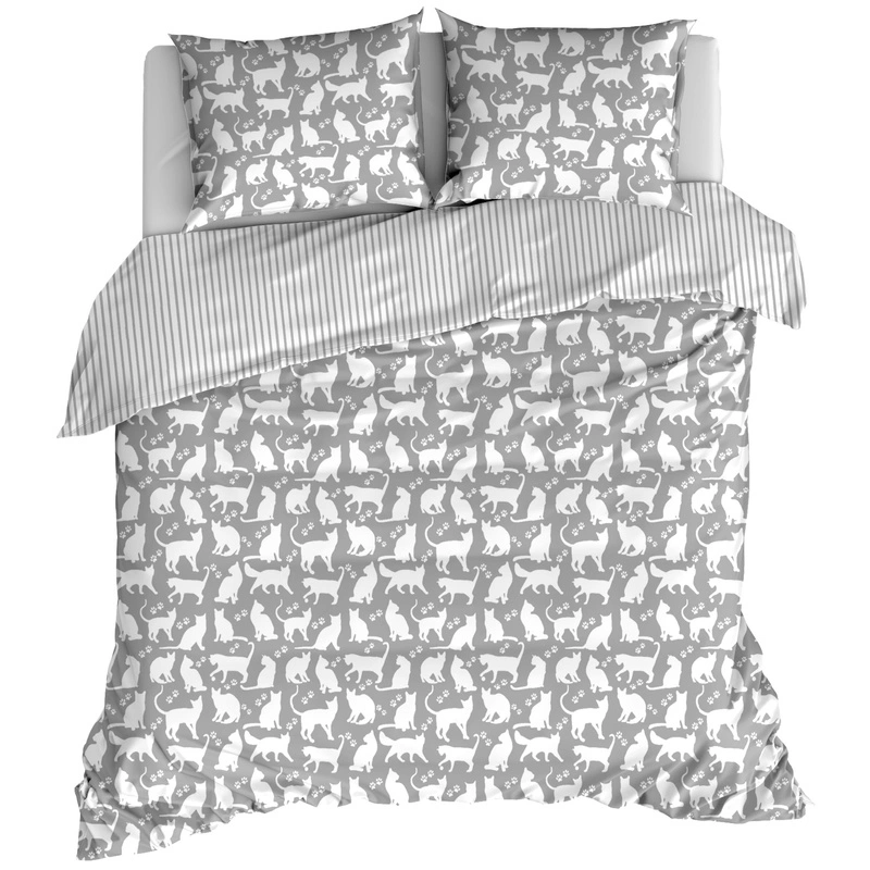 Pościel bawełniana Białe koty na szarym 150x200