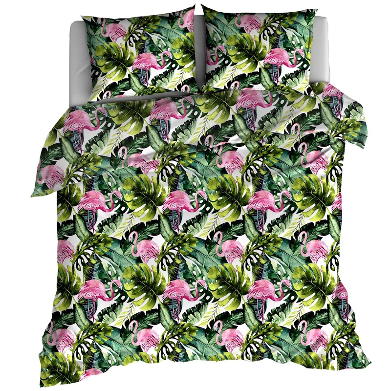 Pościel bawełniana Flamingi liście 160x200