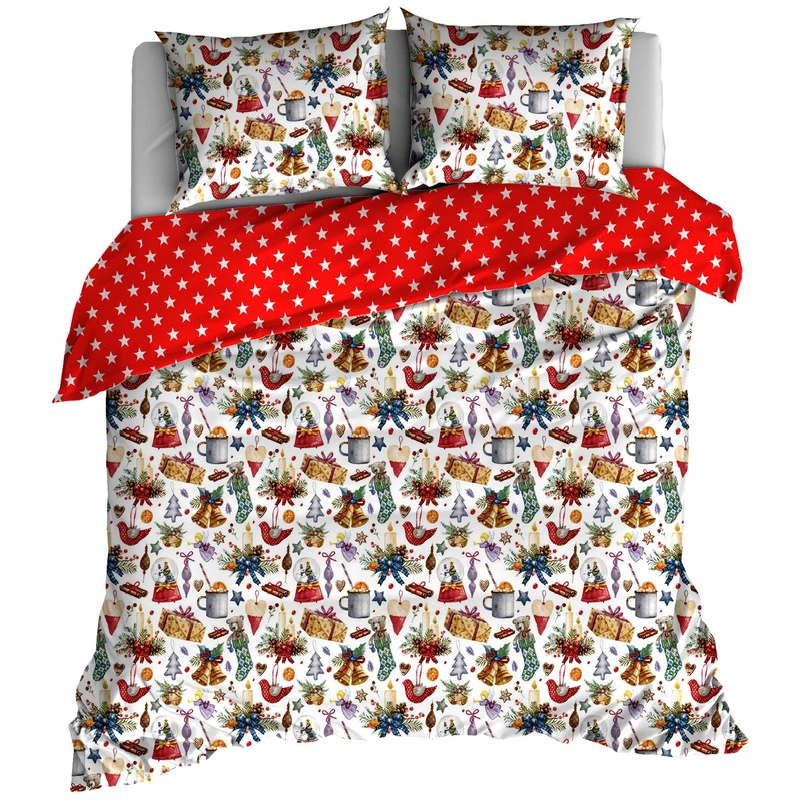 W oferowanych kompletach poszwy na kołdrę są dwustronne, a poszewki na poduszki wykonane są z jednego wzoru wiodącego.  W rozmiarach 180x200, 200x200 i 220x200 widoczne są na zdjęciach łączenia w postaci dodanych pasków po bokach. Ich szerokość zależy od rozmiaru: dla 180x200 to  20cm, 200x200 - 20cm i  220x200 - 30cm.
