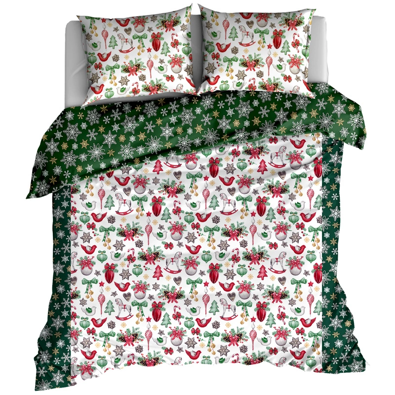 W oferowanych kompletach poszwy na kołdrę są dwustronne, a poszewki na poduszki wykonane są z jednego wzoru wiodącego. W rozmiarach 180x200, 200x200 i 220x200 widoczne są na zdjęciach łączenia w postaci dodanych pasków po bokach. Ich szerokość zależy od rozmiaru: dla 180x200 to 20cm, 200x200 - 20cm i 220x200 - 30cm.
