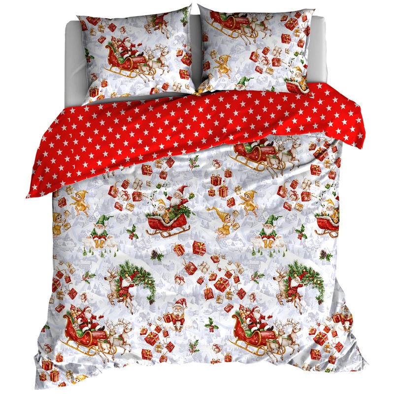 Pościel bawełniana Mikołaje w saniach 150x200