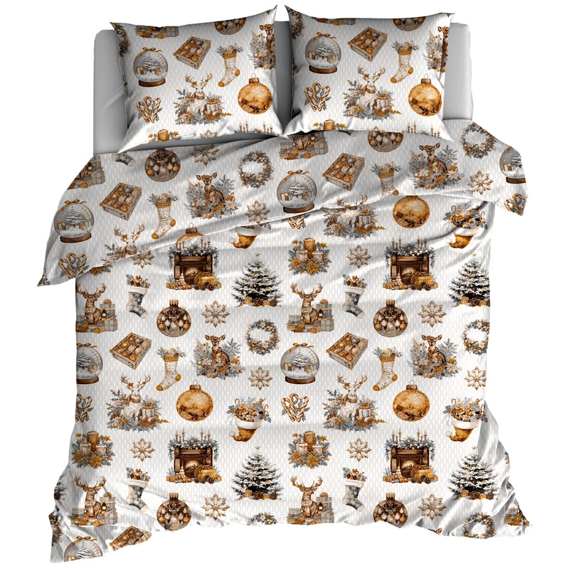 W oferowanych kompletach poszwy na kołdrę są dwustronne, a poszewki na poduszki wykonane są z jednego wzoru wiodącego.  W rozmiarach 180x200, 200x200 i 220x200 widoczne są na zdjęciach łączenia w postaci dodanych pasków po bokach. Ich szerokość zależy od rozmiaru: dla 180x200 to  20cm, 200x200 - 20cm i  220x200 - 30cm.