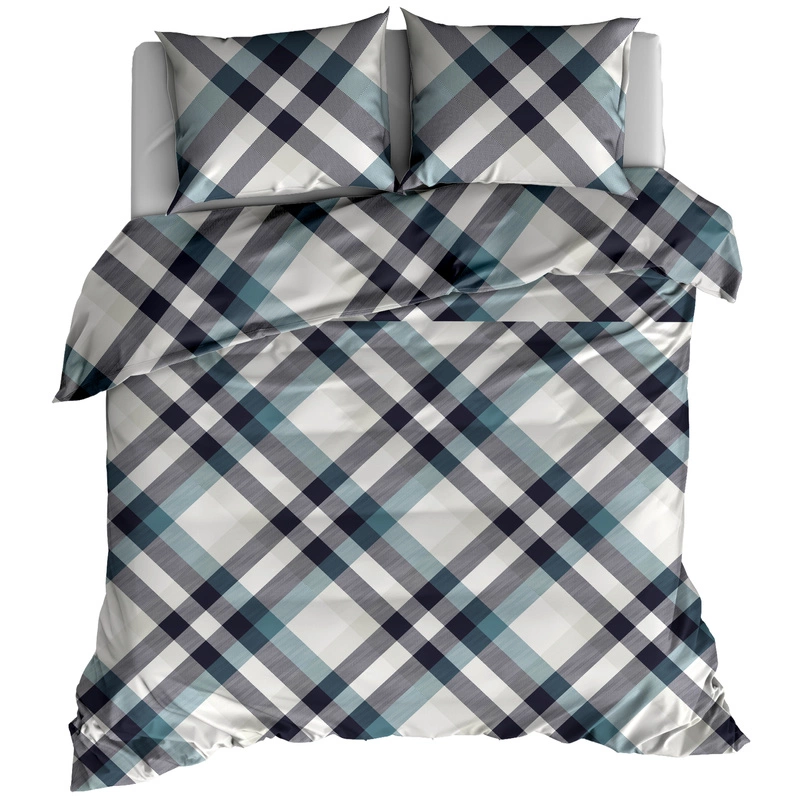 Pościel flanelowa Krata retro niebieska 220x200