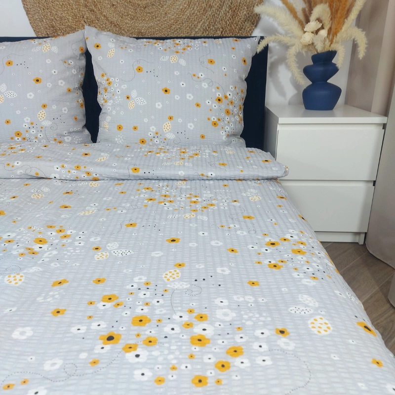 Pościel z kory Delikatne kwiaty w szarości 160x200