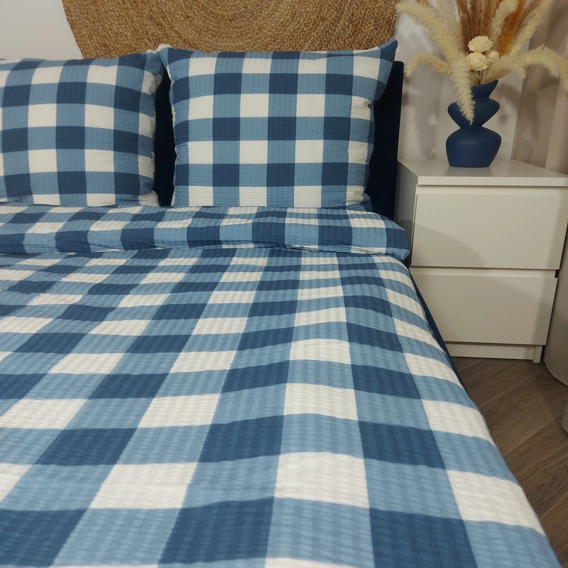 Pościel z kory Krata niebieska 160x200