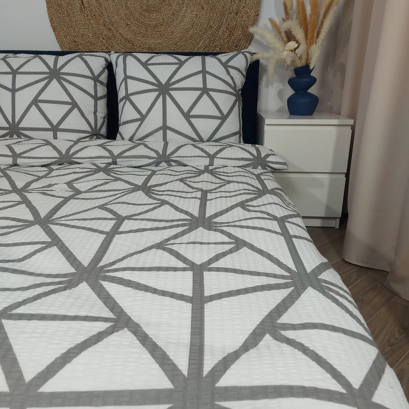 Pościel z kory Pajęczyna szara na bieli 200x220